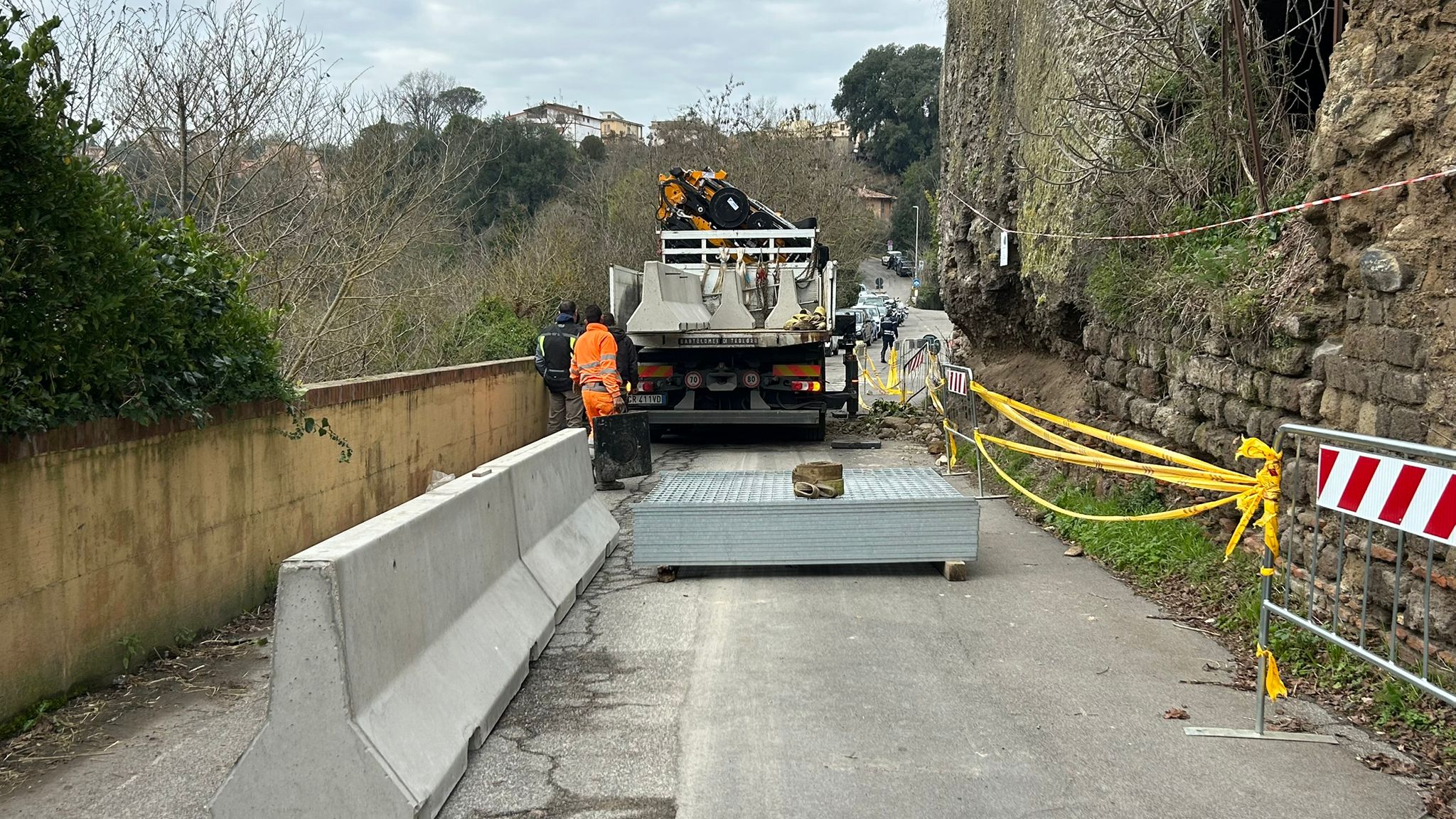 I lavori, disposti con ordinanza del sindaco Gualtieri, riguardano in questa prima fase la realizzazione di un percorso pedonale con il posizionamento di new jersey e reti keller. A seguire saranno avviati gli interventi per la demolizione delle porzioni instabili delle murature sovrastanti la sede stradale, la messa in sicurezza delle superfici residue mediante sistemi di contenimento e la realizzazione di opere provvisionali di protezione, finalizzate a tutelare l’incolumità pubblica e a superare la condizione di isolamento del Borgo di Isola Farnese, unica viabilità di accesso all’abitato. Le attività proseguiranno fino al completo superamento delle condizioni di pericolo, con l’obiettivo di ripristinare la piena fruibilità della strada nel più breve tempo possibile e in condizioni di totale sicurezza.